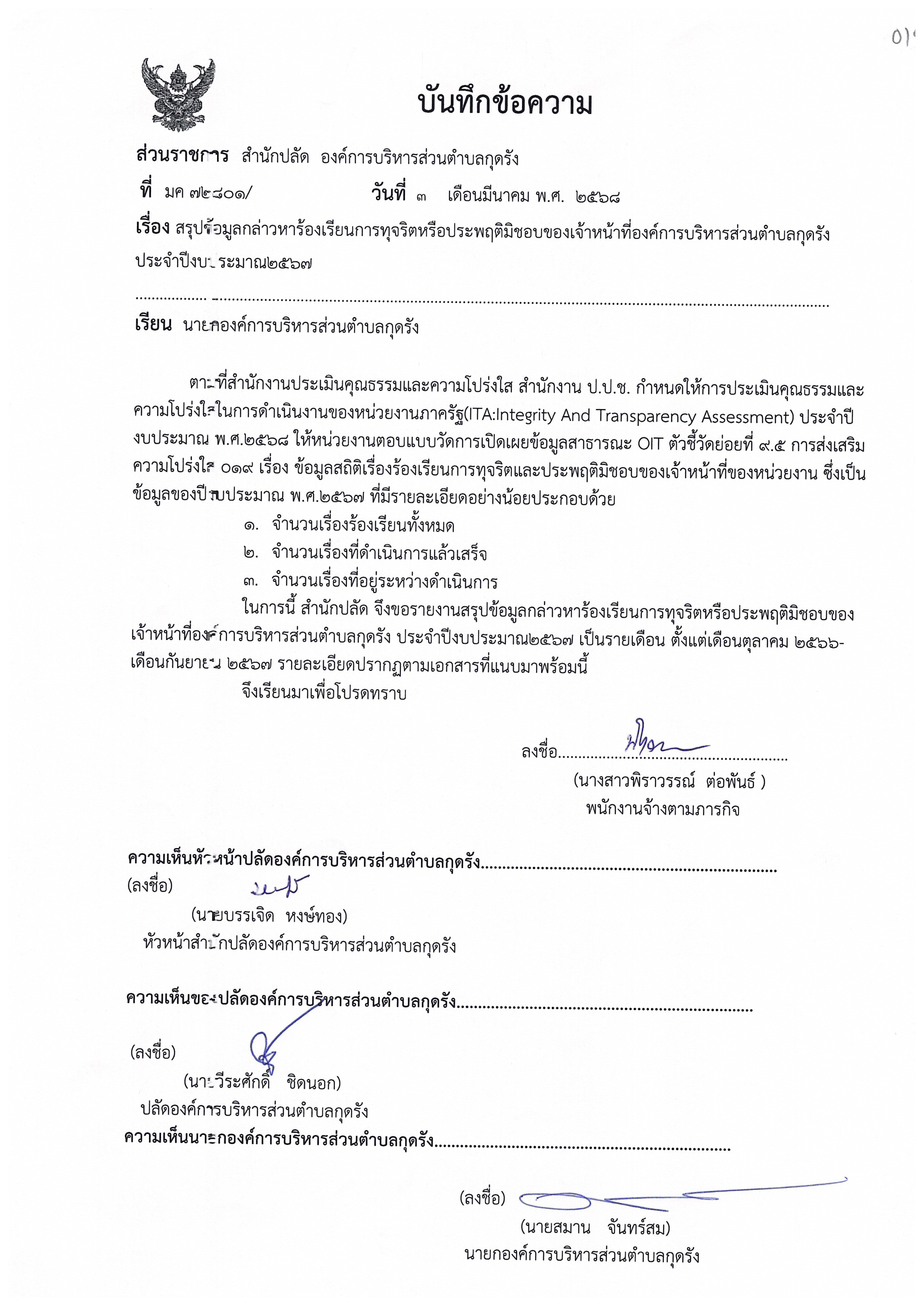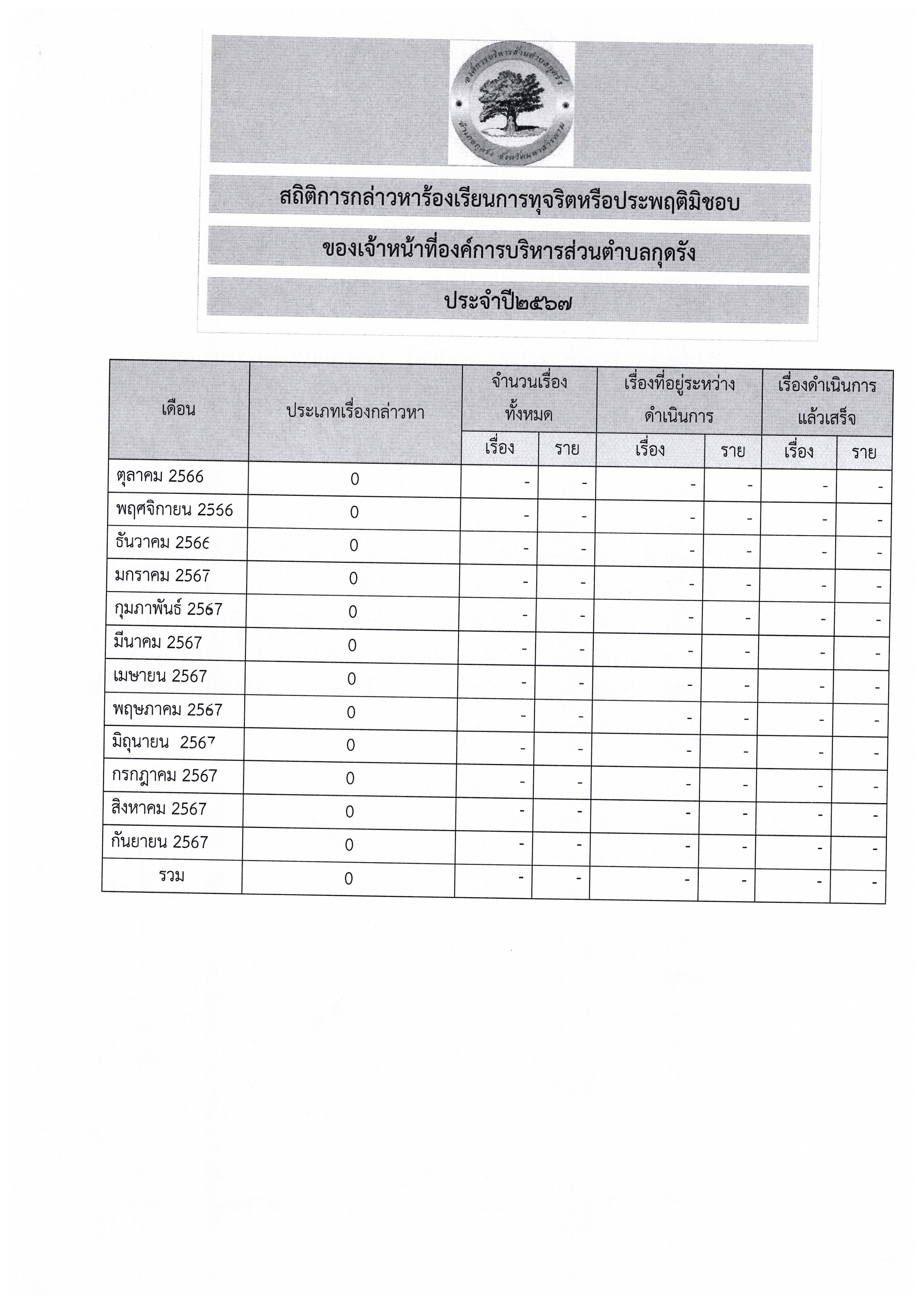 ข้อมูลสถิติเรื่องร้องเรียนการทุจริตและประพฤติมิชอบ ปี67