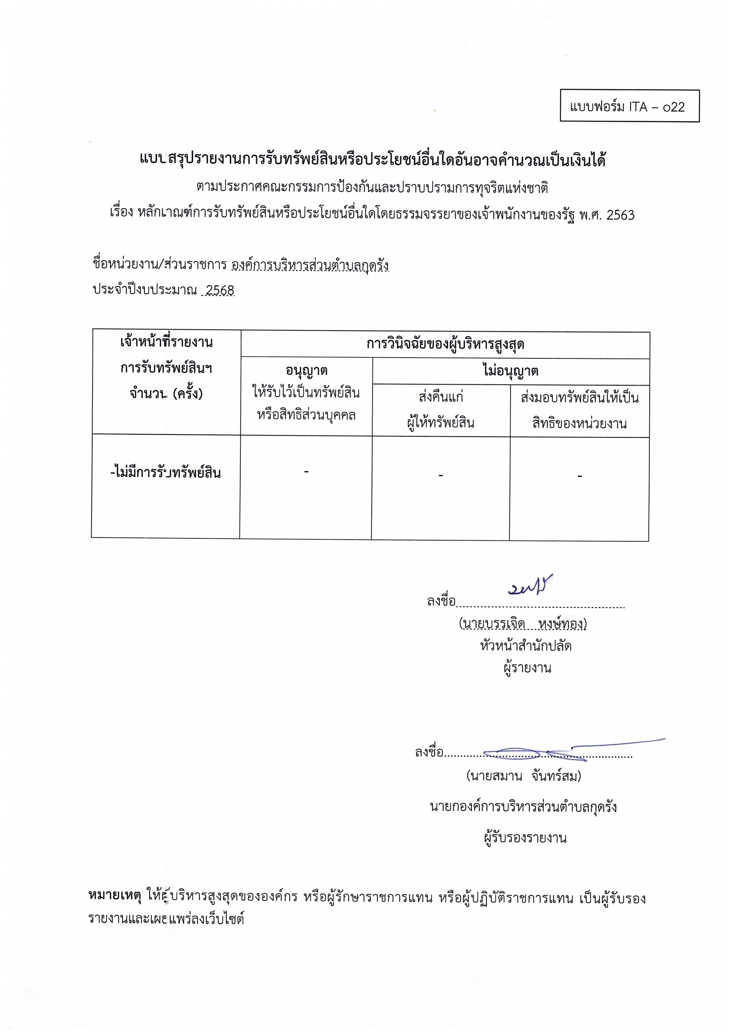 รายงานการรับทรัพย์สินหรือประโยชน์อื่นใดโดยธรรมจรรยา